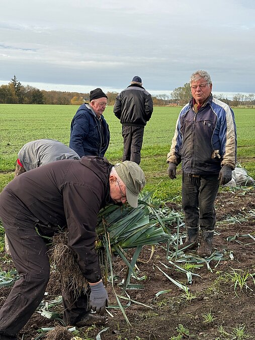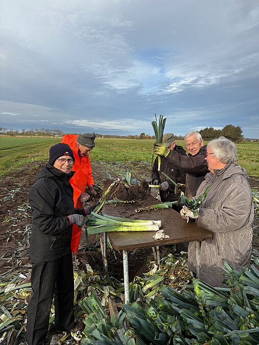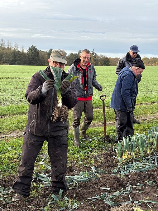 En lille flok var mødt op på Sørens mark 1. november - vi tog de sidste porrer op, og der var ikke nok (desværre) til at sælge af på torvet om lørdag.