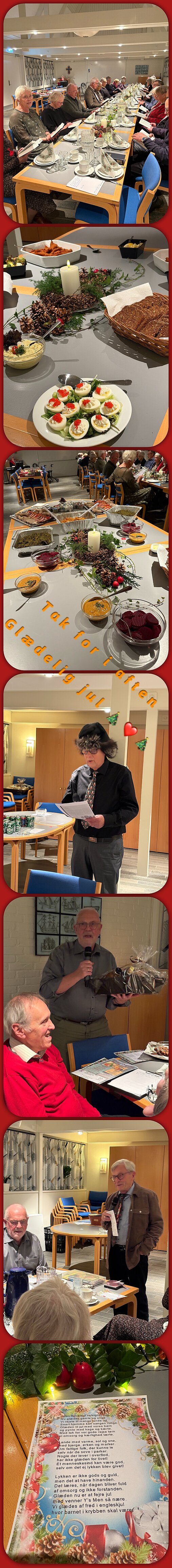 Hvor har vi medlemmer i Sæby Y´s Mens Klub holdt julefrokost sammen mange gange. Man kunne fristes til at tro det kunne blive lidt kedeligt med alle de gentagelser. Men en god tradition med et godt indhold bliver ikke slidt. For nok er der gentagelser som der ikke må laves ret meget om på. Julemaden med sild og sul. Kendte julesalmer, nye julesange som i år var om de tre Vise Mænd - ikke Y´s Men - og om grønlangkålens historie. Ketty sørger for vi holder melodien og en god tone. En god julehistorie er heller ikke at foragte. Carsten delte sin erfaring fra Grønland om, hvor svært det er at få et hundekobbel foran slæden til at fungere. Hans outfit gjorde fortællingen troværdig – måske. Bankomester Svend styrede med stor erfaring bankospillet, men var grebet af nutidens effektivitet og uddelte gevinster ved lodtrækning undervejs. Godt Svend! Vi kan jo ikke bruge hele vores ”ungdom” på bankospil. Nå ja, held eller en stor portion risalamande hjælper til for at sikre sig mandelgaven. Alt sammen gode og afslappede rammer hvor vi kunne se tilbage og betegne 2025 som et godt år hvor klubbens møder og aktiviteter har givet et godt fællesskab. En af aktiviteterne er dyrkning af porrer hvor Søren stiller mark til rådighed og ikke mindst lade til kaffepausen efter veludført arbejde i marken. Julekurven er velfortjent! Aftenen sluttede med en sang på melodien ”Julen har bragt velsignet bud”, som Finn havde skrevet i flyet hjem fra en backpacker jordomrejse. Om mødet med mennesker med helt andre levevilkår, men med imødekommenhed og varme. En taknemlighed over at komme hjem til fred i engleskjul.